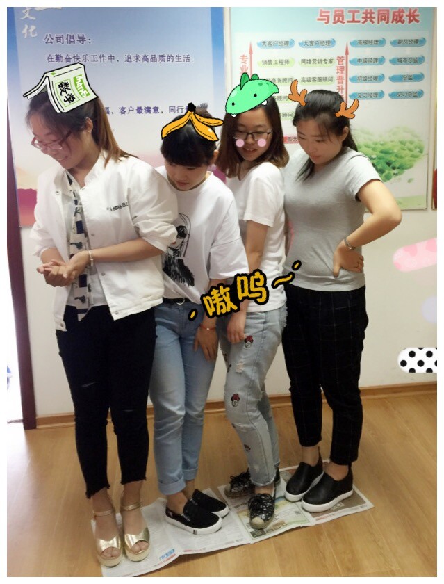 4開(kāi)的報紙放在地上(shàng),每張報紙上(shàng)站(zhàn)4個(gè)人(rén)(一個(gè)小(xiǎo)組),每個(gè)小(xiǎo)組派一個(gè)代表與對方猜拳(剪刀石頭布),輸掉的小(xiǎo)組須将腳下的報紙對折後再站(zhàn)在上(shàng)面(所有(yǒu)的雙腳都不許着地)。
