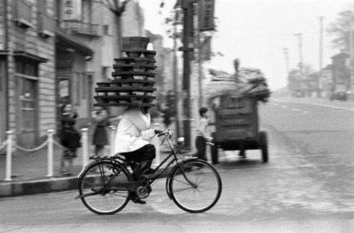 20世紀中葉日本騎着自行(xíng)車(chē)的外送小(xiǎo)哥(gē)