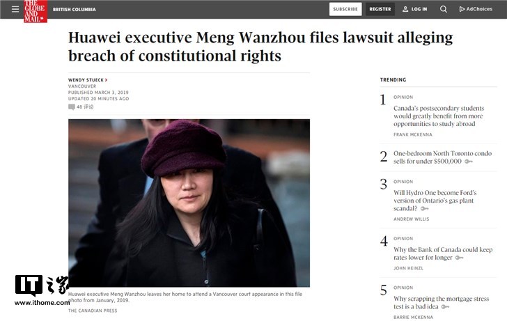 孟晚舟律師(shī)團已于3月1日向加拿(ná)大(dà)不列颠哥(gē)倫比亞省高(gāo)等法院提起民事訴訟。聲明(míng)說,訴訟指控孟女士被嚴重侵犯憲法權利,并就“加拿(ná)大(dà)政府官員多(duō)次未能遵守法治而造成的公職失職和(hé)非法監禁”要求賠償。