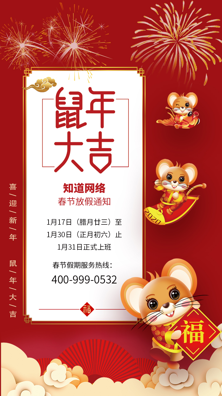 【知道(dào)網絡】2020年春節放假通(tōng)知