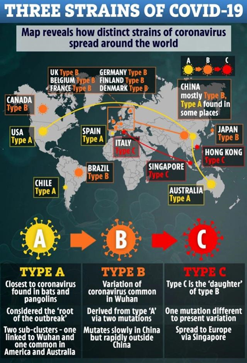 據英國《太陽報》4月10日報道(dào),來(lái)自劍橋大(dà)學的研究人(rén)員繪制(zhì)了新冠病毒(Covid-19)最初在人(rén)類中傳播的地圖,發現有(yǒu)三個(gè)不同但(dàn)密切相關的變體(tǐ)。