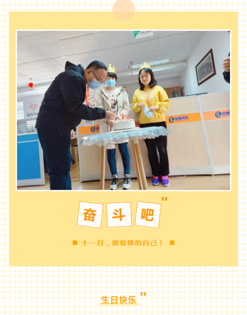 希望客服部所有(yǒu)同事在十一月、十二月能取得(de)更好的、讓自己更滿意的成績,奮鬥吧(ba),十一月,奮鬥吧(ba),小(xiǎo)夥伴們!