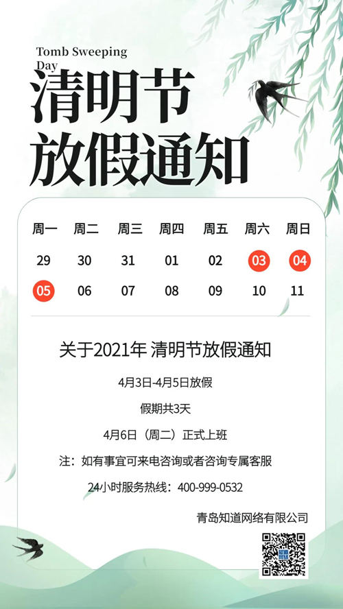 【知道(dào)網絡】清明(míng)節放假通(tōng)知