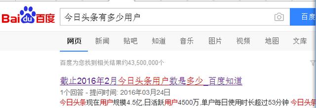 今日頭條在2016年3月就到了4.5億用戶