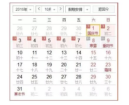 10月1日至7日放假調休,共7天。10月8日(星期六)、10月9日(星期日)上(shàng)班。