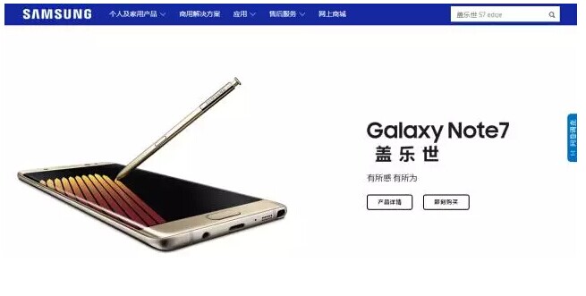 目前,在中國的三星官網上(shàng),Note7還(hái)仍作(zuò)為(wèi)主推商品,在首頁最醒目的地方。