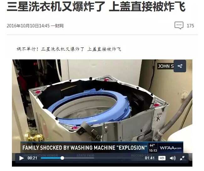 實際上(shàng),這還(hái)不是三星洗衣機第一炸。