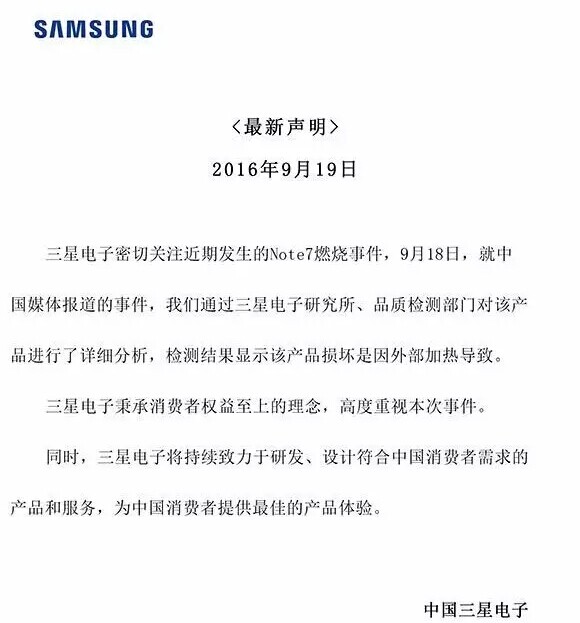 8月中旬,Note7持續爆炸,三星立刻對美國、韓國進行(xíng)召回,而對中國隻用了200字的聲明(míng),就被排除在外。