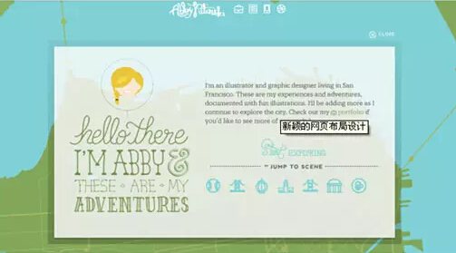 3、關于作(zuò)品集類型的創意網站(zhàn)布局,如下面的網站(zhàn),是一個(gè)作(zuò)者的原創作(zuò)品收藏。如果你(nǐ)沒有(yǒu)走進這個(gè)網站(zhàn),看到小(xiǎo)編給的這張圖片是否覺得(de)它很(hěn)普通(tōng),色彩也顯得(de)暗淡,其實這個(gè)網站(zhàn)的布局非常有(yǒu)意思,從你(nǐ)進網站(zhàn)開(kāi)始,頁面就會(huì)跟着你(nǐ)的鼠标所指的位置移動,點擊你(nǐ)想要了解的內(nèi)容就可(kě)進入詳情頁。而網站(zhàn)左上(shàng)角的心形則是整個(gè)網站(zhàn)的導航欄,進入退出一鍵搞定。