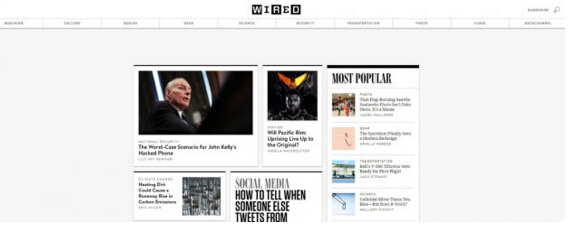 突出品牌的方式有(yǒu)很(hěn)多(duō),內(nèi)容是其中很(hěn)重要的部分,同時(shí)視(shì)覺和(hé)體(tǐ)驗也不容忽略。比如在技(jì)術(shù)類數(shù)字雜志(zhì)中極為(wèi)出名的 Wired ,也就是《連線》雜志(zhì)。獨樹(shù)一幟的 LOGO,黑(hēi)白分明(míng)的配色融入整個(gè)數(shù)字雜志(zhì)的網站(zhàn)設計(jì),和(hé) LOGO 以及品牌本身遙相呼應。