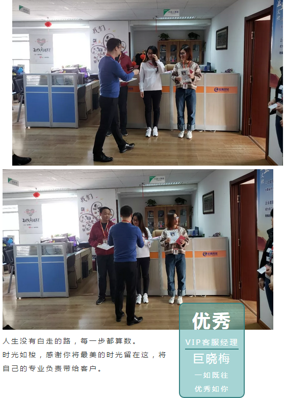 公司為(wèi)三位優秀的同事制(zhì)作(zuò)了精美的個(gè)人(rén)相冊,還(hái)有(yǒu)一個(gè)驚喜紅包,感謝你(nǐ)們對公司的付出,在接下來(lái)的工作(zuò)中,也要繼續努力,發光發熱 !