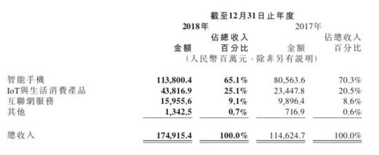 分析小(xiǎo)米2018年營收構成,可(kě)以看到其主要收入來(lái)源依然是手機業務。